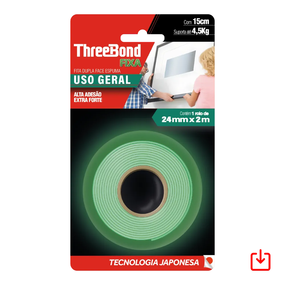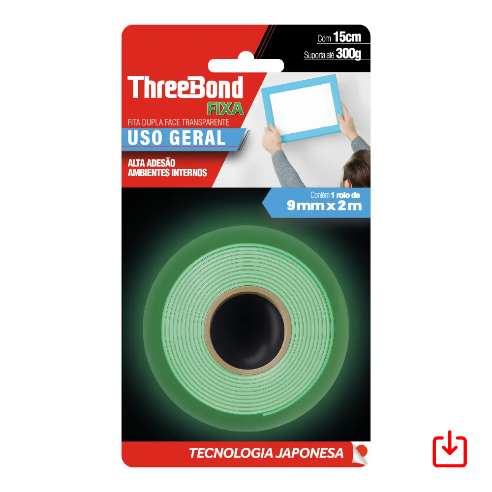 ThreeBond Fixa são fitas dupla face com alto desempenho e com excelente propriedade de adesão. Ideais para fixar objetos como placas de sinalização, canaletas plásticas, quadros, acrílicos e outros itens de decoração.